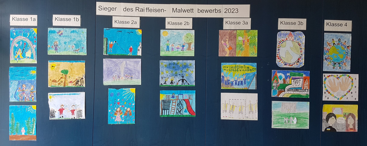 Die Raiffeisenbank Burggen lud dieses Jahr alle Kinder der Schule zum Malwettbewerb ein. Das diesjährige Motto lautete „Zusammenhalt“. Nachdem im Vorfeld Herr Clausen von der Raiffeisenbank Burggen, der Schulleiter Herr Saidl und die beiden Bügermeister Frau Brendl-Wolf (Burggen) und Herr Saur (Ingenried), die drei gelungensten Bilder jeder Klasse ausgesucht hatten, wurden am Mittwoch, den 3. Mai in der Aula der Grundschule die Sieger gekürt.