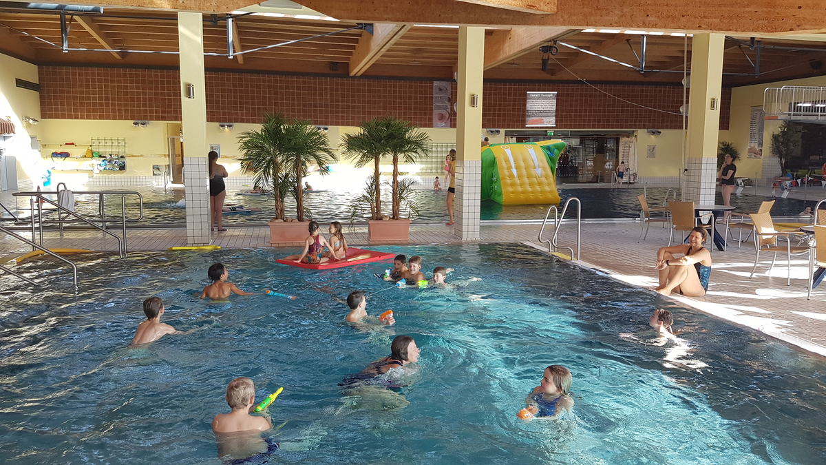 Beim Saison-Finale stand der Schwimmspaß im Vordergrund. Die Kinder durften im Wasser toben, sich zahlreiches Schwimmmaterial ausleihen und sogar den Gummiberg benutzen.