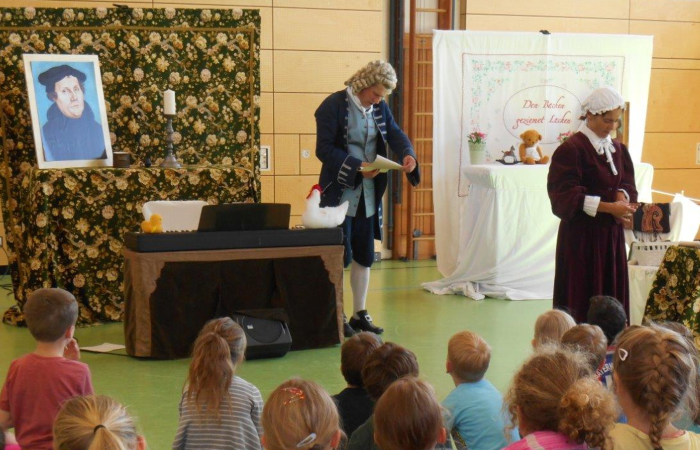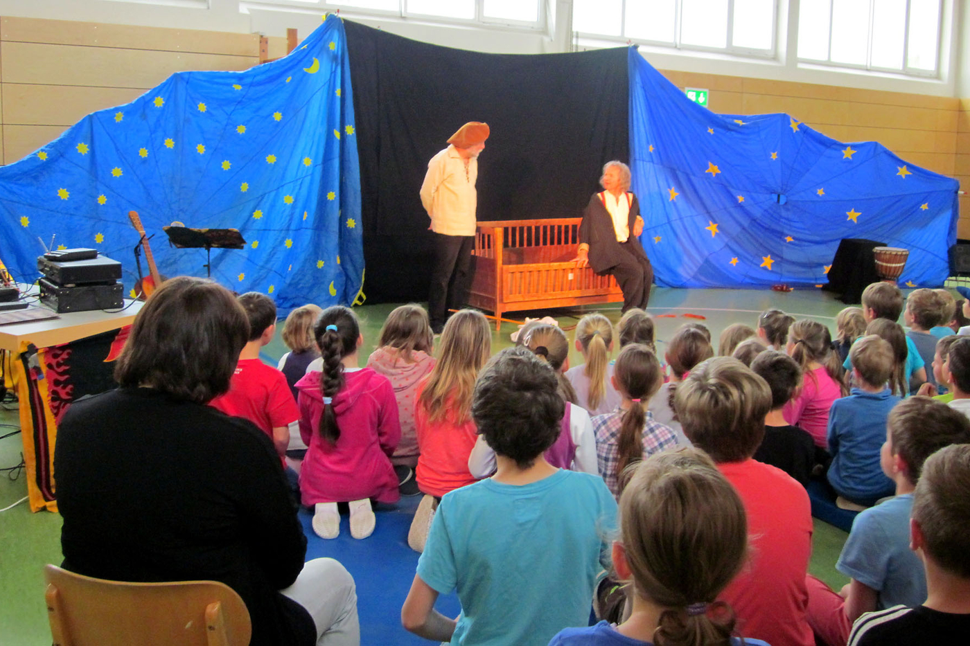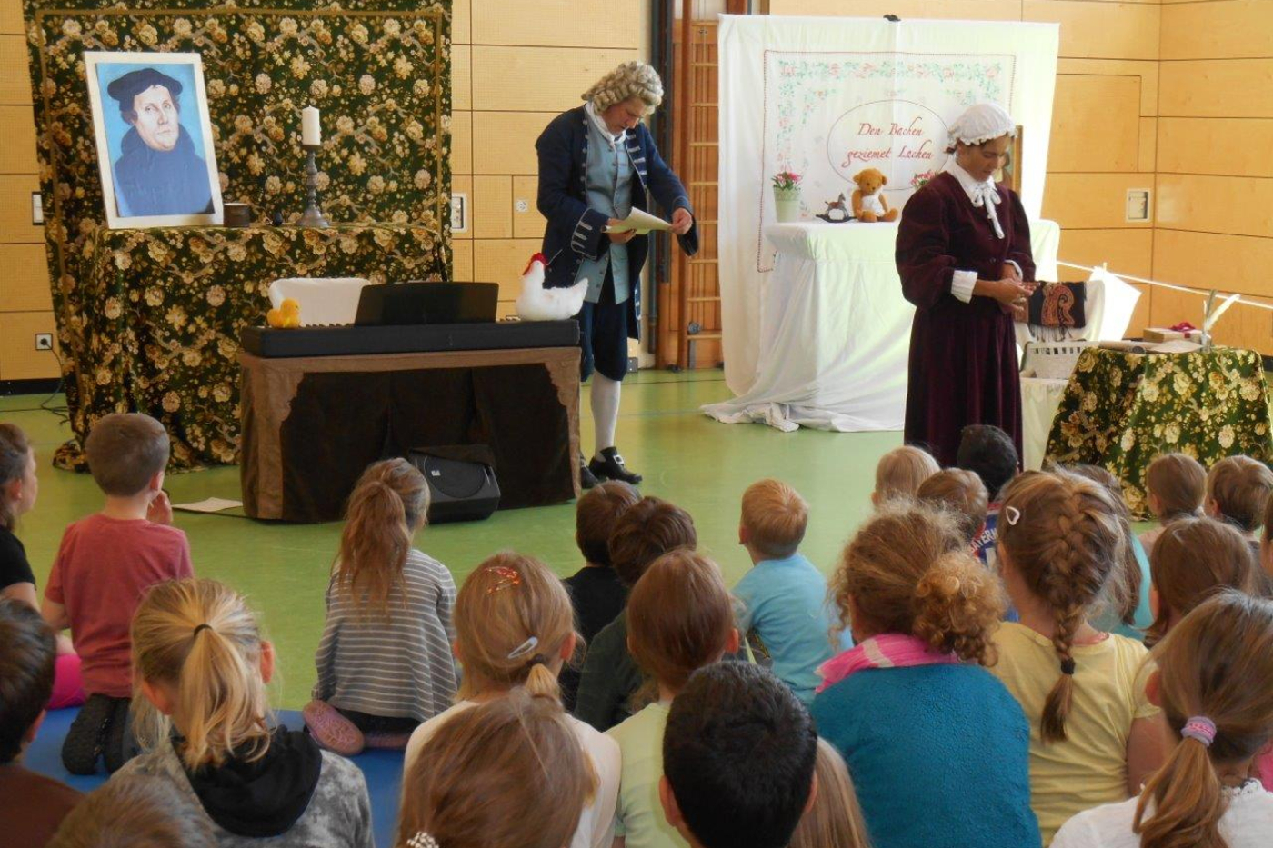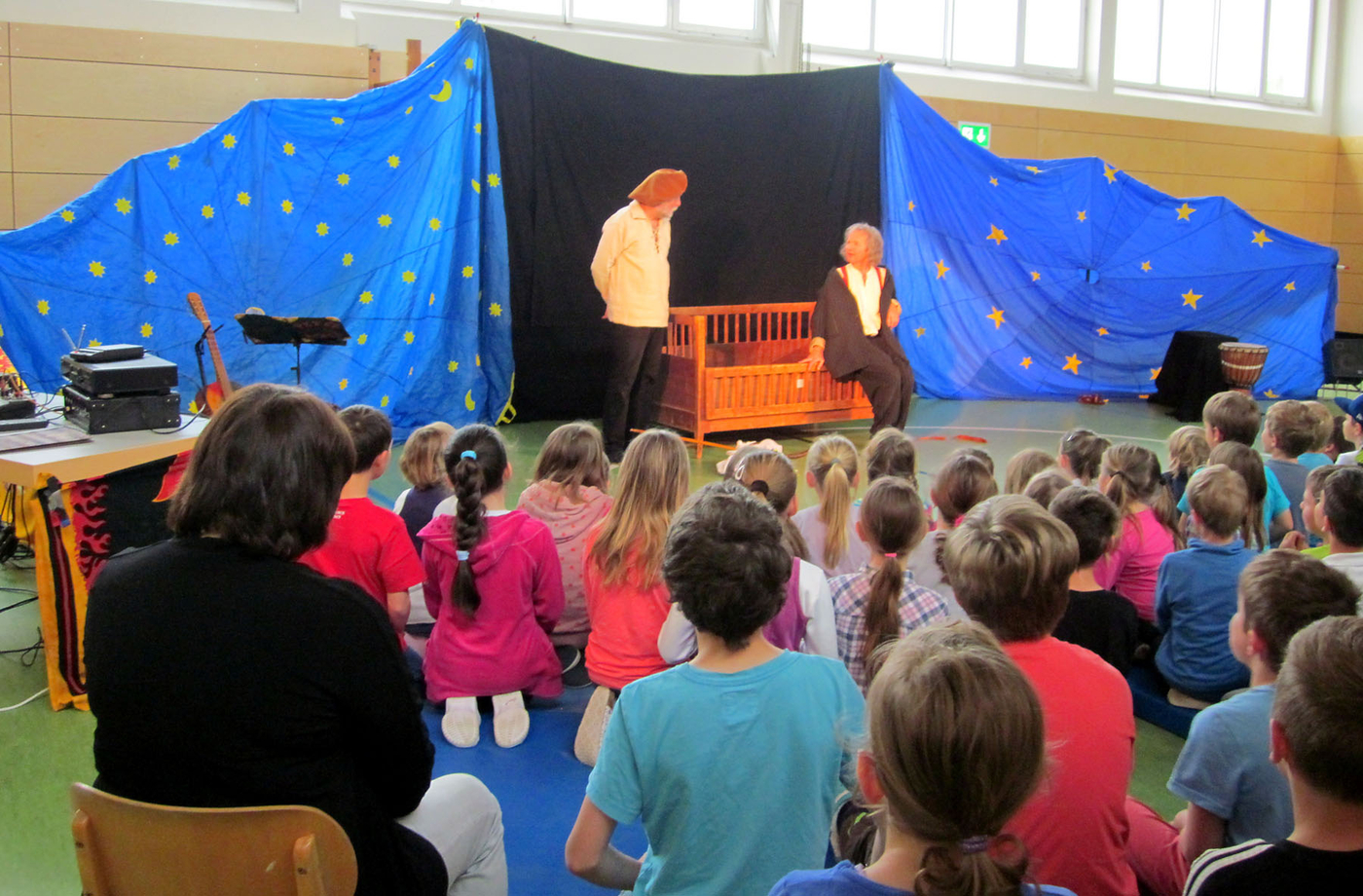 Einmal im Jahr sind Künstler in der Schule eingeladen. Alle Klassen versammeln sich in der Turnhalle. Es kommen Musikstücke (Peter und der Wolf, Zauberflöte, ...) und Theaterstücke zur Aufführung. Der Zauberer Hardy zum Beispiel begeistert alle Kinder. Gebannt schauen sie bei den Zaubertricks zu. Geschickt bindet er die Schüler mit ein. Sie dürfen selbst aktiv werden.