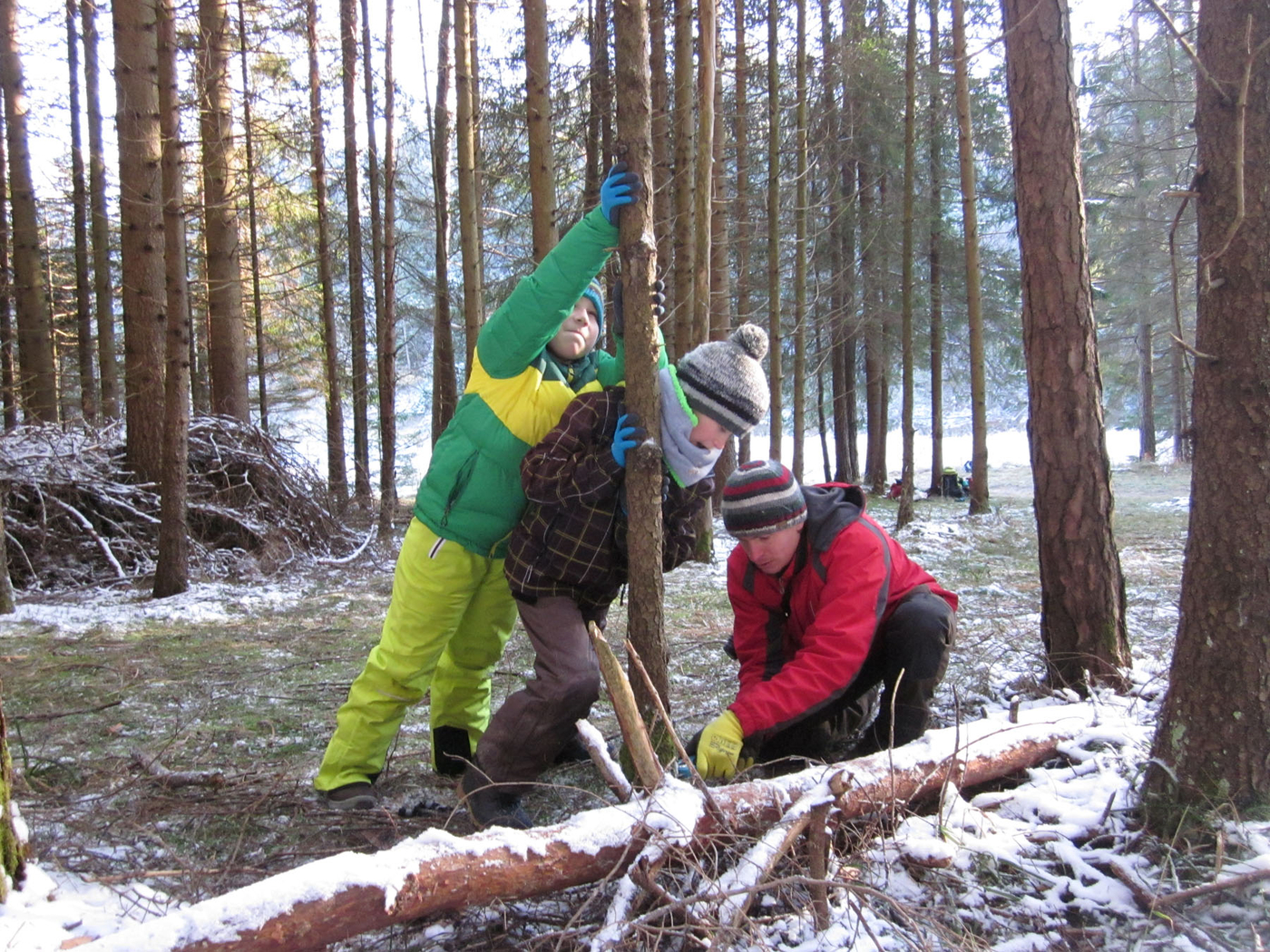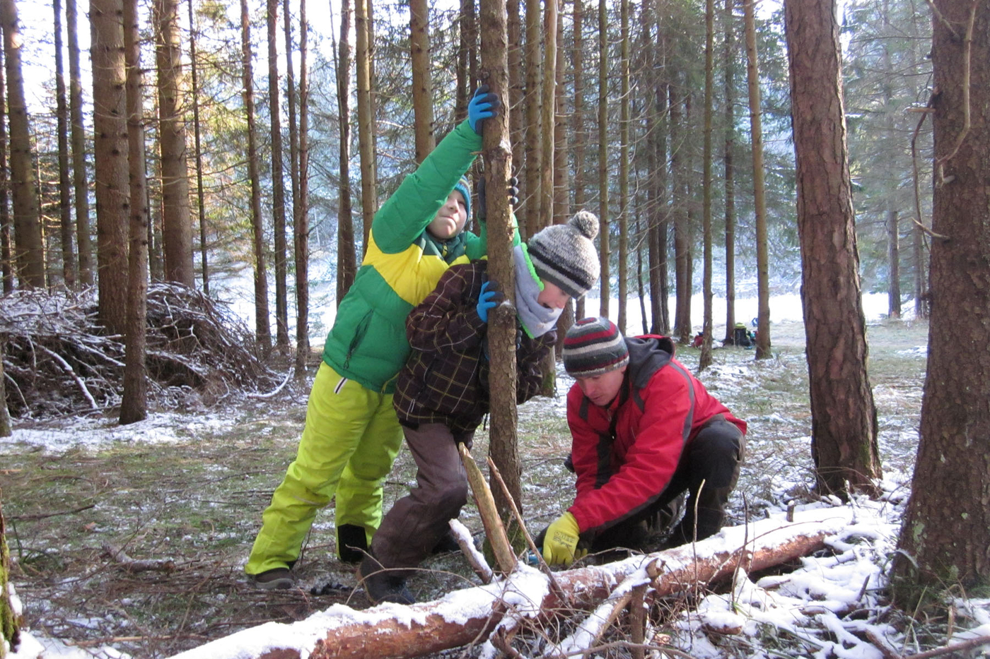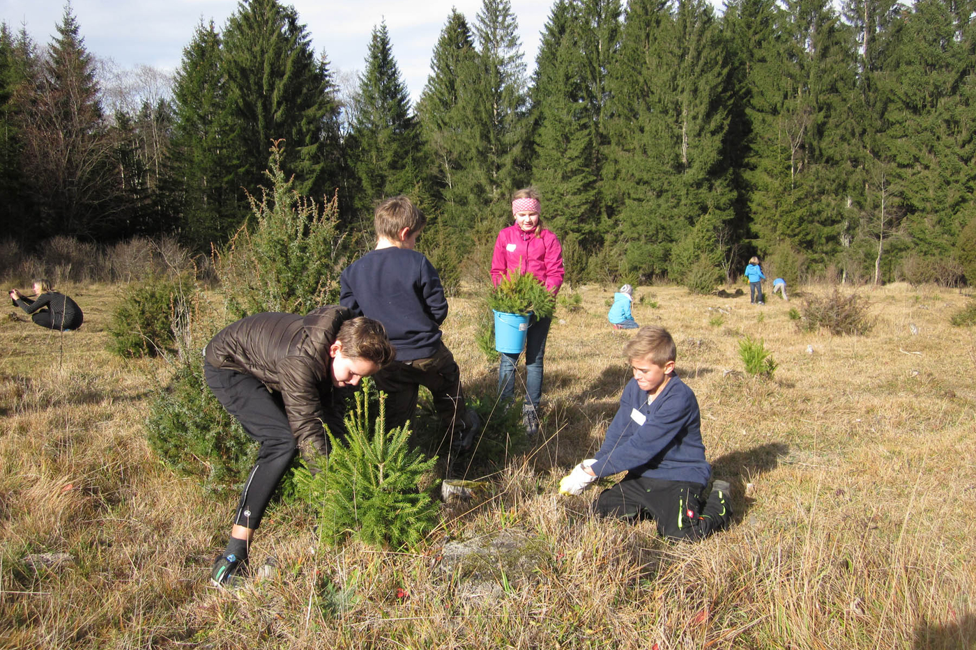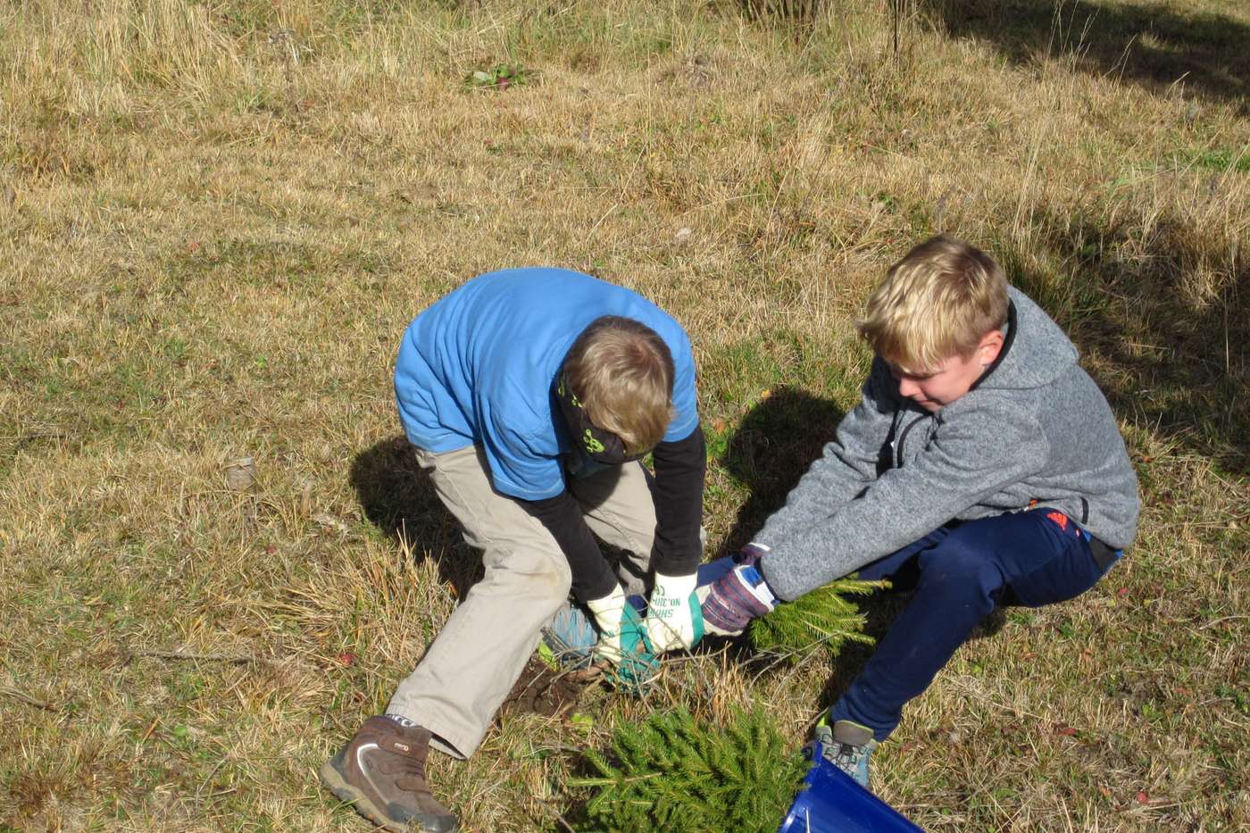 Bei der Entbuschung der Wacholderweide machen wir uns gezielt auf die Suche nach Fichten. Sie sind dort nicht erwünscht. Das Fällen der jungen Bäume bereitet den Viertklässlern besonders viel Freude, wenn sie die schönsten Exemplare als Christbäume mit nach Hause nehmen dürfen. So können die Kinder für den Heiligabend dann ihren selbst gefällten Weihnachtsbaum schmücken.